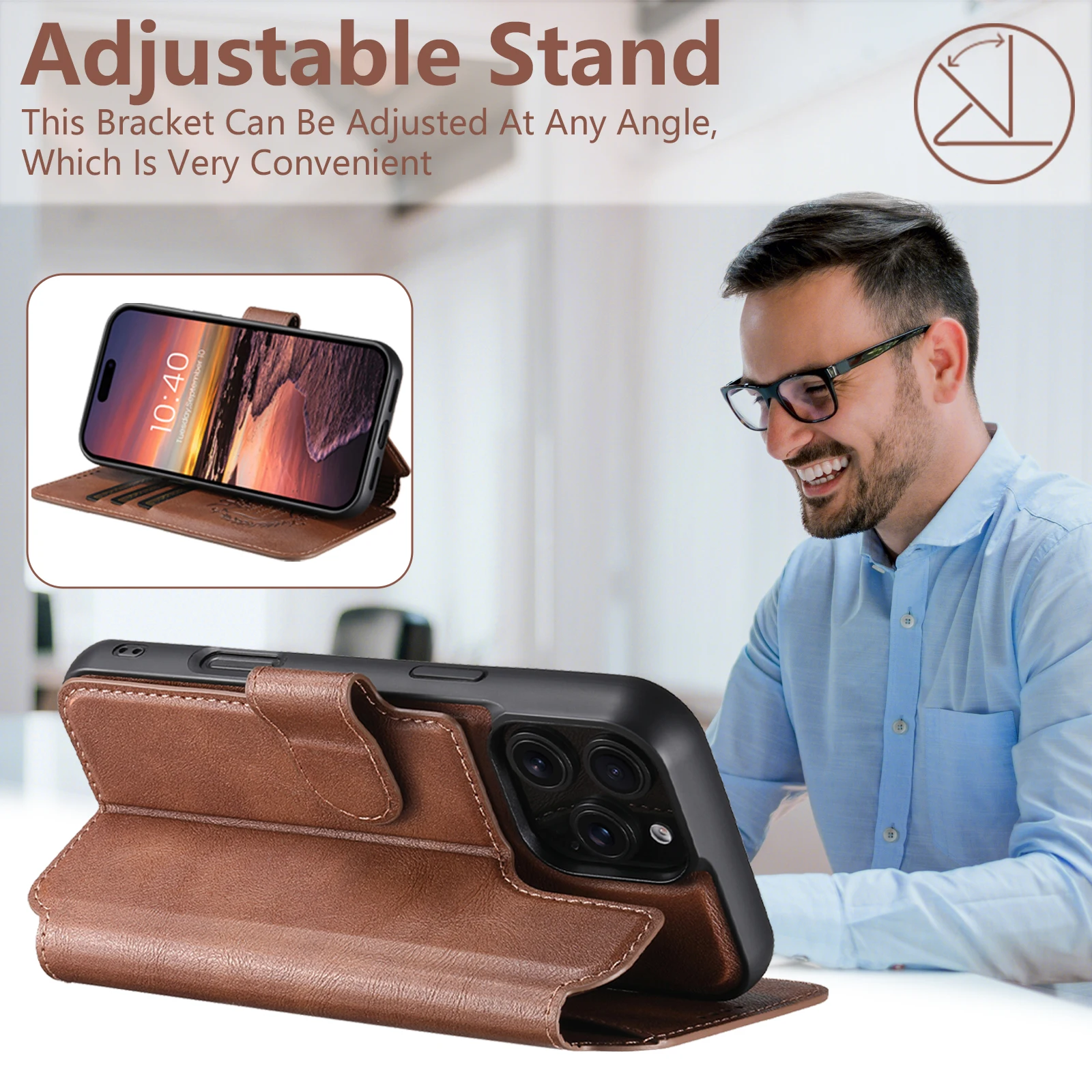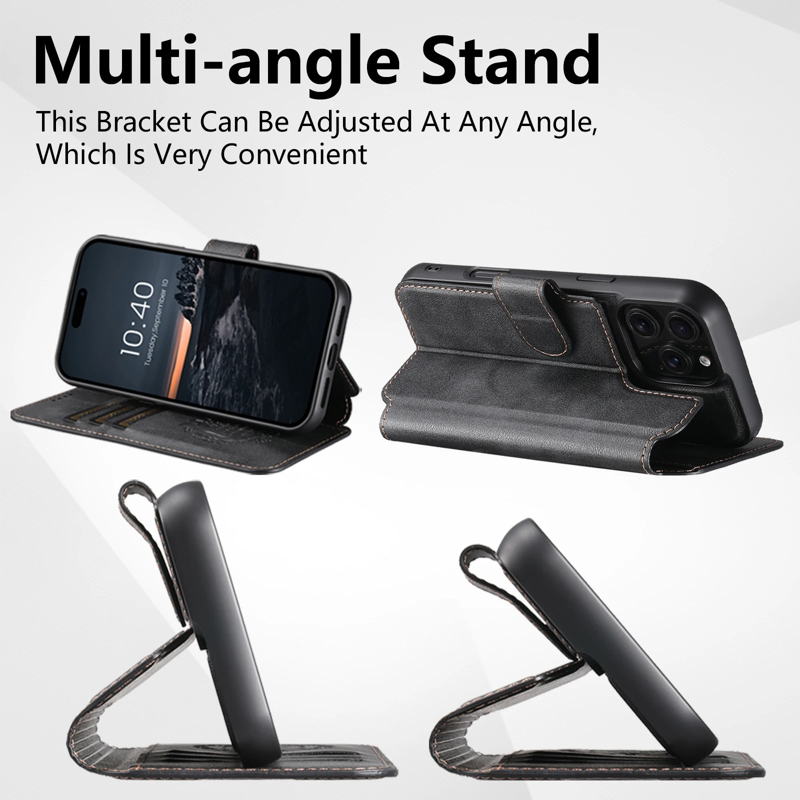 SUTENI PU Leather Wireless Charging Card Holder Stand Wallet Magnetic Flip Cover Phone Case For iPhone 16 Pro Max 15 Plus 14 13