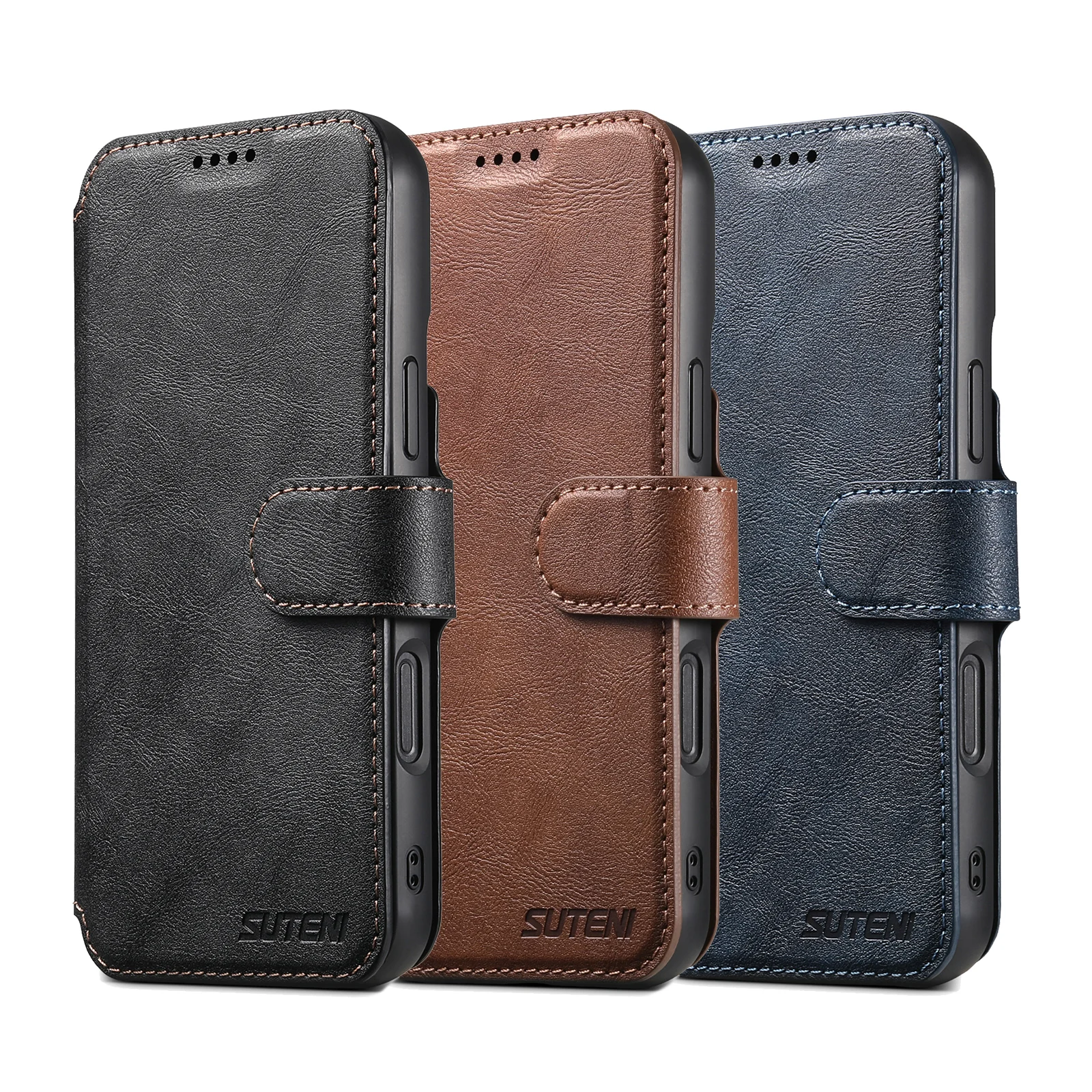 SUTENI PU Leather Wireless Charging Card Holder Stand Wallet Magnetic Flip Cover Phone Case For iPhone 16 Pro Max 15 Plus 14 13
